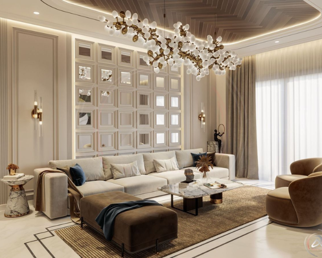 4BHK Luxury Interior Design in Gurugram with Panelled Living Room